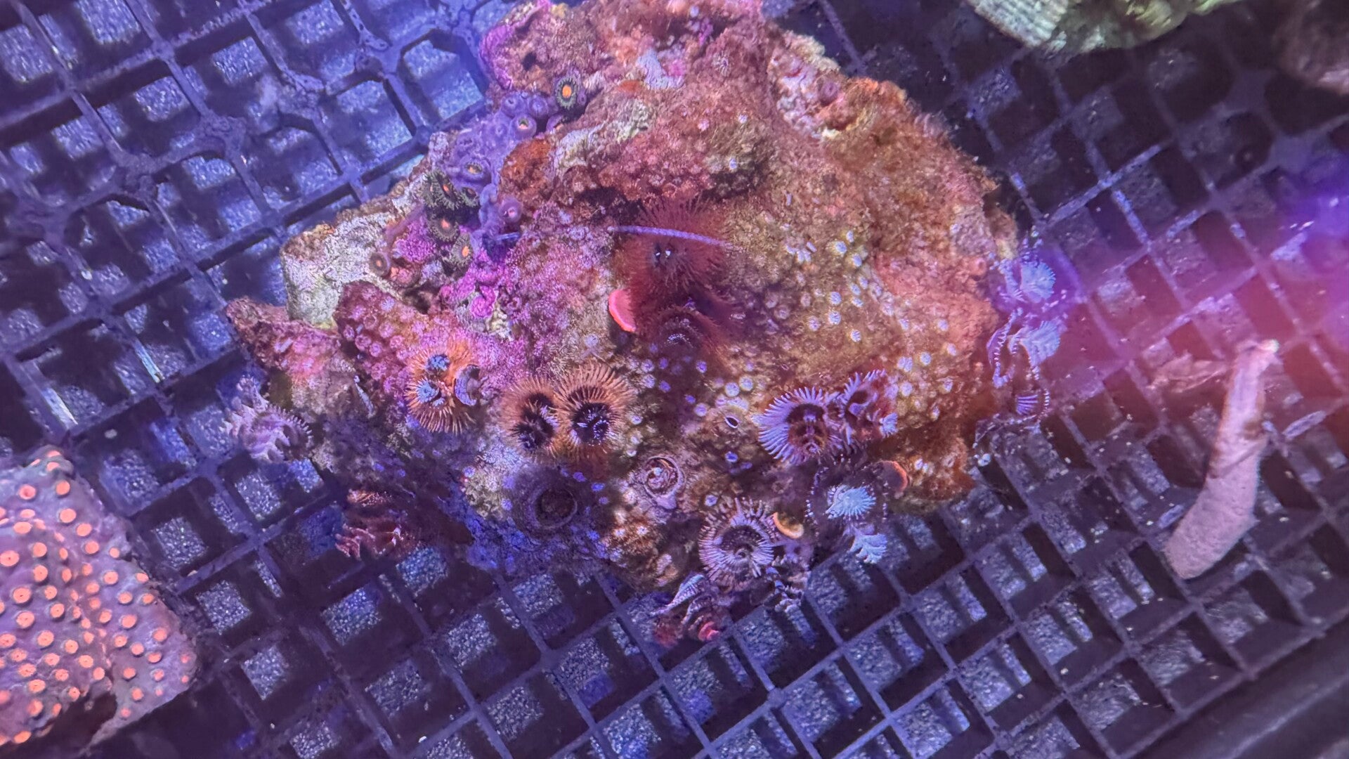 Eine recht einfach zu haltende kleinpolypige Steinkoralle die sehr viel Licht und eine gute Strömung benötigt. Mit farbigen Röhrenwürmer